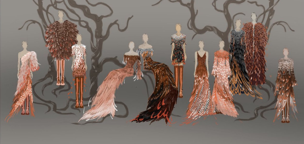 Эксклюзивно созданные для проекта образы выстраиваются в визуальный рассказ о «древнем русском мире», фантазийном и утончённом. Особое место занимает платье «Божественная Майя» из собрания Государственного Эрмитажа, созданное дизайнером в 2015 году в память о великой Майе Плисецкой, а также кутюрное платье из уникального эко-материала тайвек, созданное Ахмадуллиной в 2025 году ко Дню Земли.
